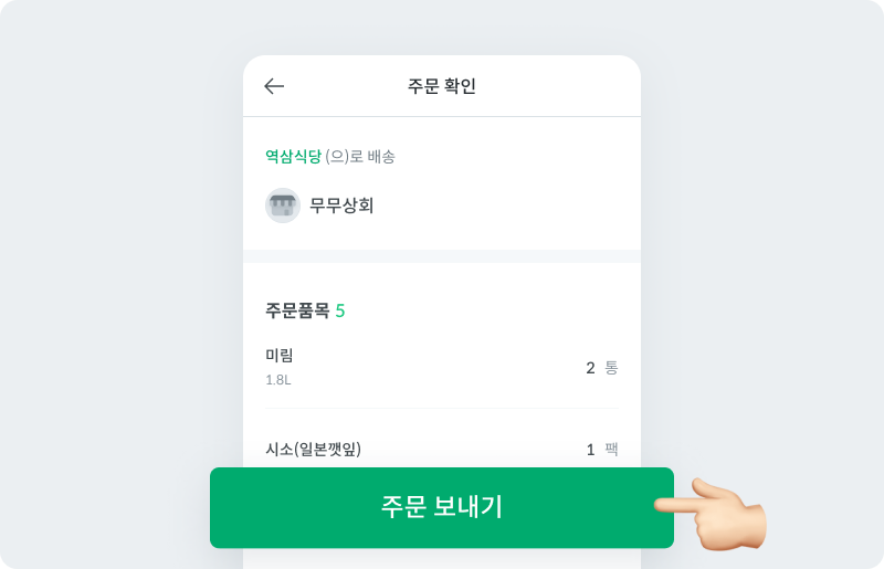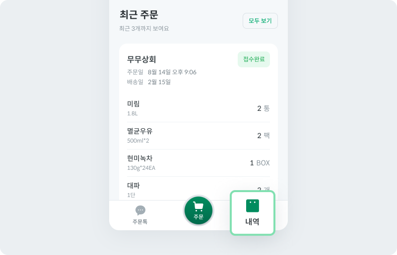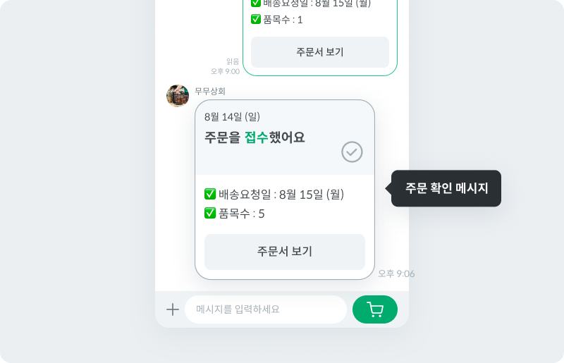 해당 주문을 접수했다는 메시가 발송됩니다.