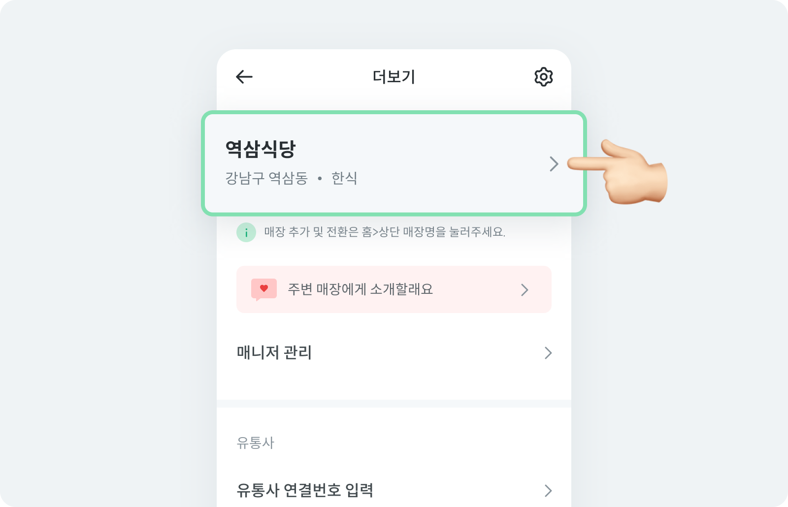 예) 건물 뒤 주차장에 식자재를 두는 곳을 표시해두었어요.