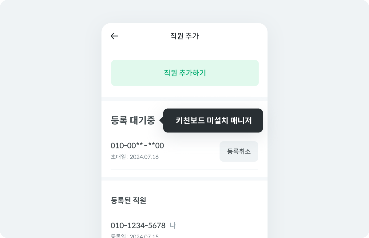 아직 키친보드에 가입하지 않은 직원이예요.