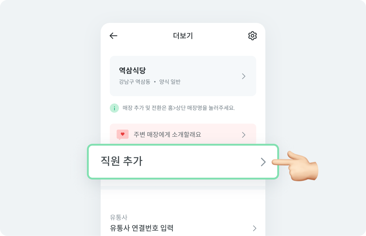 '직원 추가'를 선택해주세요.