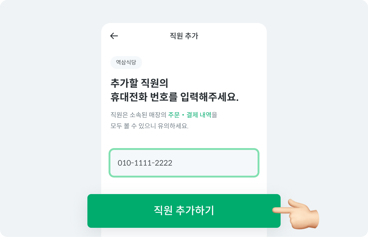 추가할 직원의 전화번호를 입력하고